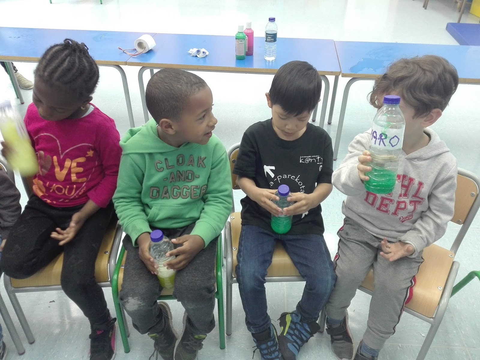 ¿ QUÉ VA A PASAR CUANDO MEZCLEMOS TEMPERAS DE COLOR DIFERENTE CON EL AGUA?
