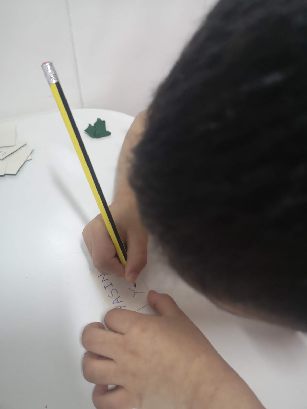 2- Con ayuda de un pincel o un bastocillo escribe en la hoja tu nombre.